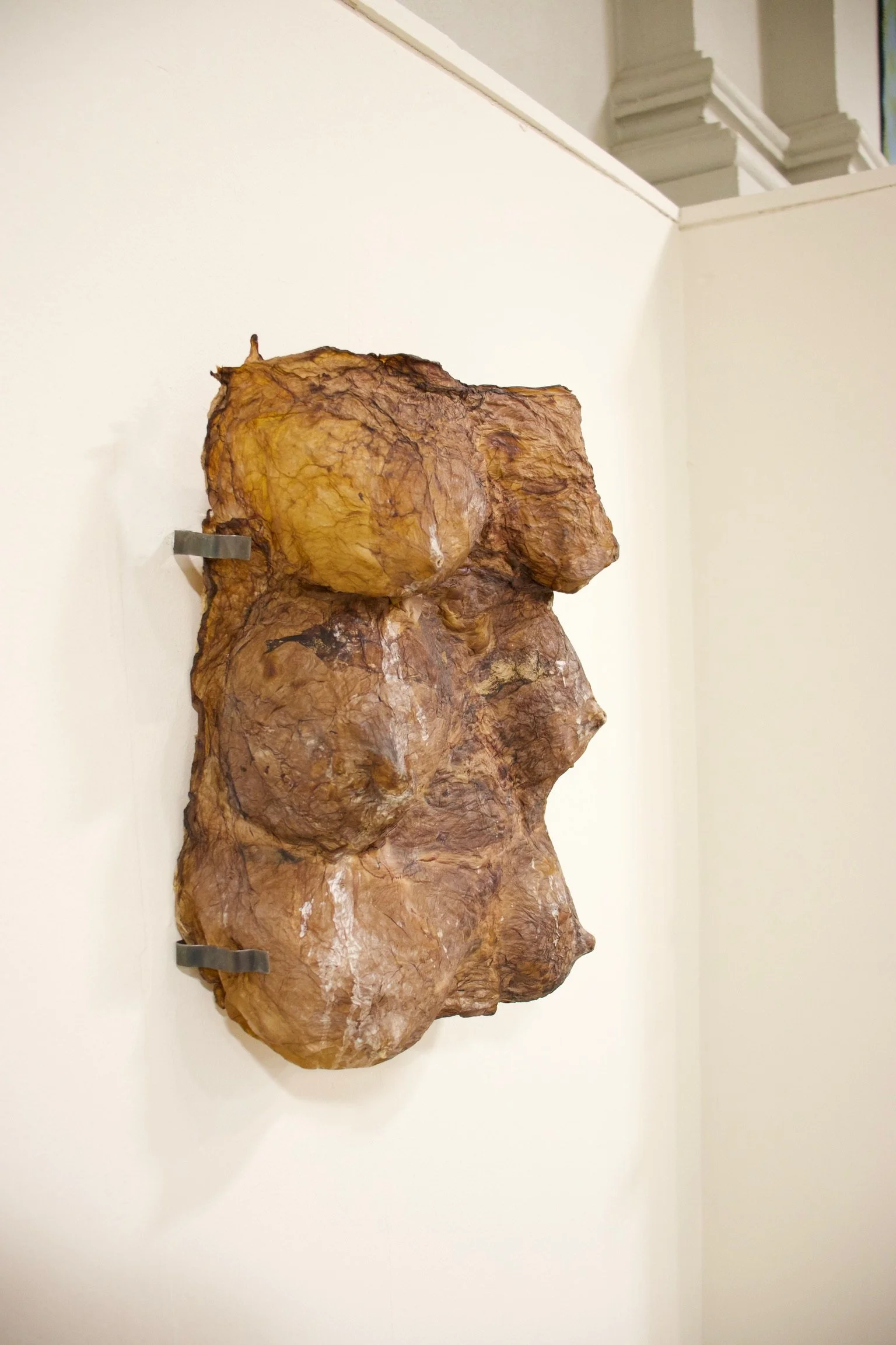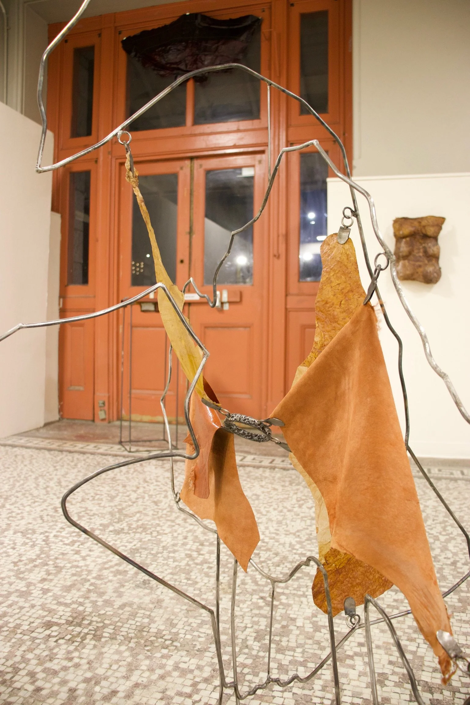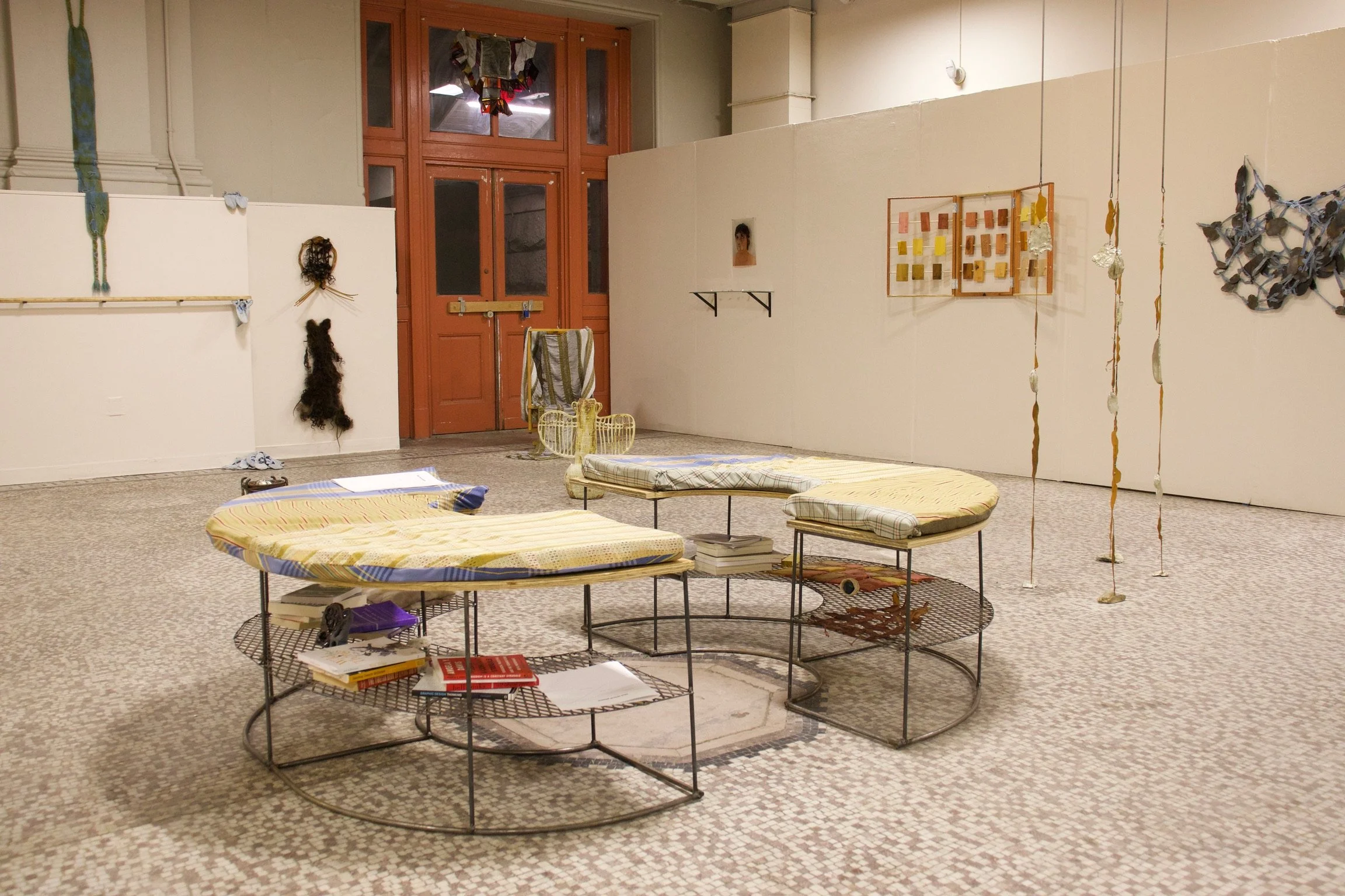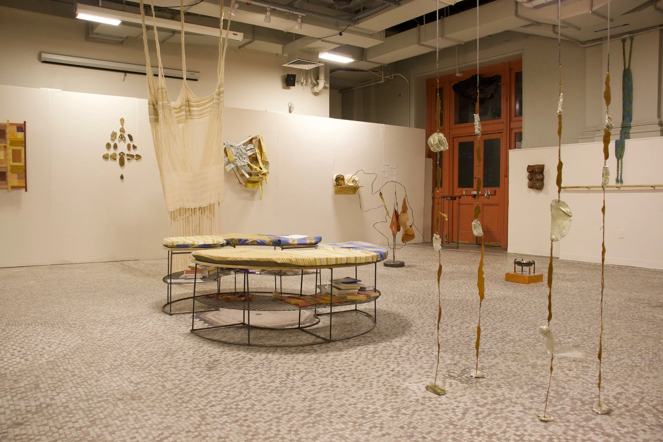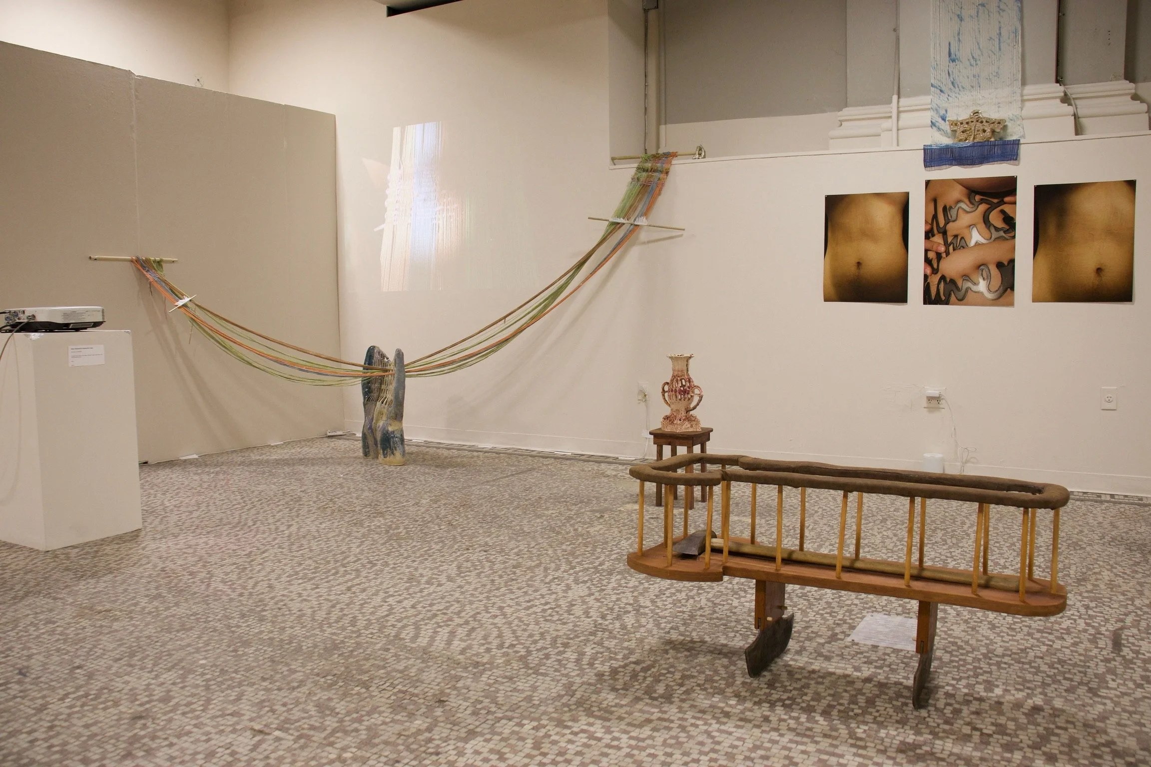 This exhibition is a collaboration between artists Maia Malakoff, Katherine Luna, and Sarah Leiva. Through the recontextualization of the body and material, the trio of artists explore the connective points between their personal practices and those of their communities and genealogies. By placing historical practices such as weaving, ceramics, and metalworking in conversation with each other, they prioritize the rituals of their crafts as identifiers of those who they are in community with. Malakoff, Luna, and Leiva transform the curated art gallery into a space to gather and explore with care.